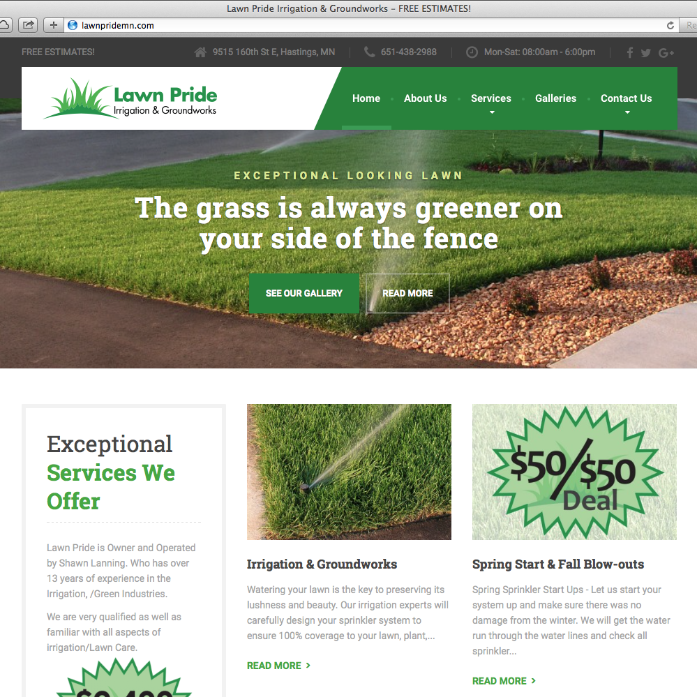 Lawn Pride needed a website for 2016. I was able to get a responsive website done before spring and help market his business for the year. If you are in the market for a lawn sprinklers installed in your yard, get a free estimate today!