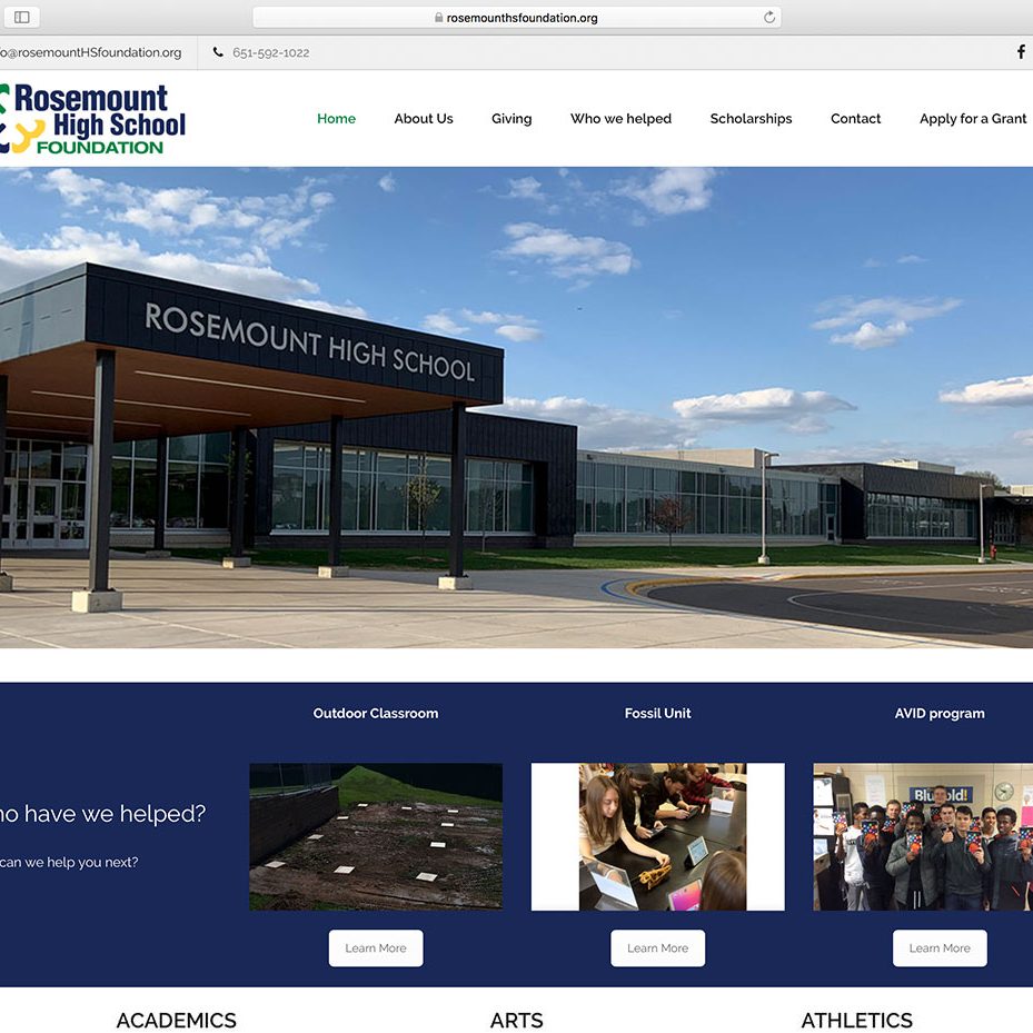 The Rosemount High School Foundation was started in 2016. I was asked to come on board and help with the marketing for the foundation. I now sit on the board for the foundation as the Chair of Marketing and Communications. Our mission is to benefit academics, arts, and athletics in the Rosemount High School community.…